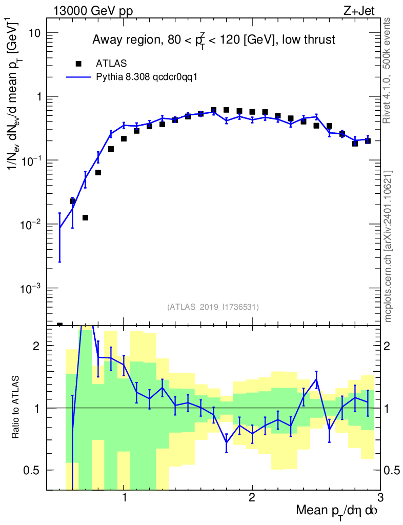 Lines: data, pythia8 8.308 qcdcr0qq1 |