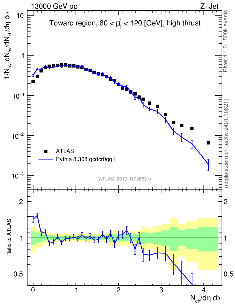 Lines: data, pythia8 8.308 qcdcr0qq1 |