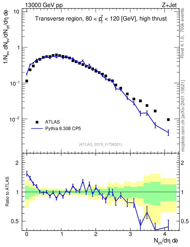 Lines: data, pythia8 8.308 CP5 |