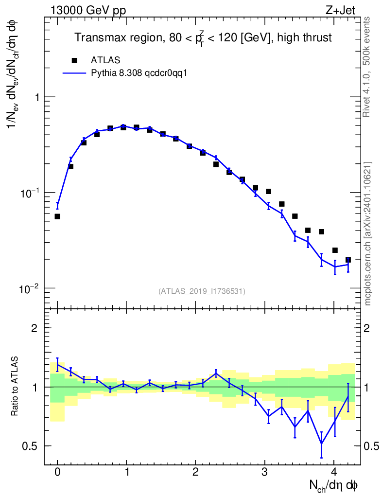 Lines: data, pythia8 8.308 qcdcr0qq1 |