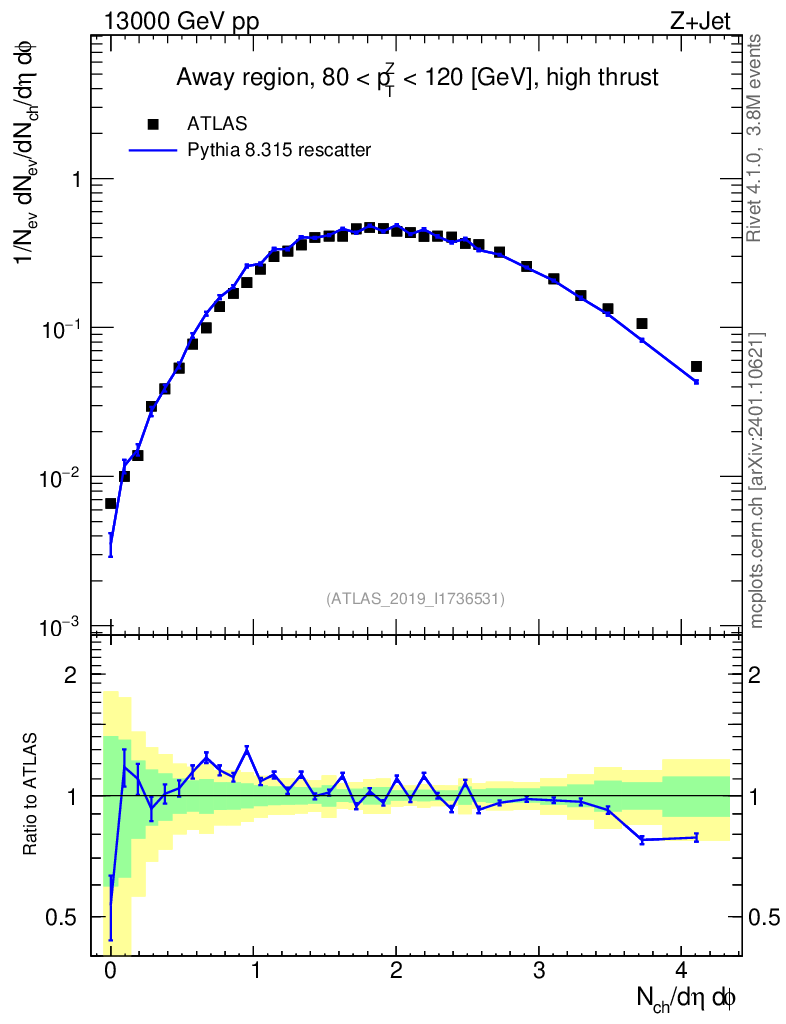 Lines: data, pythia8 8.315 rescatter |