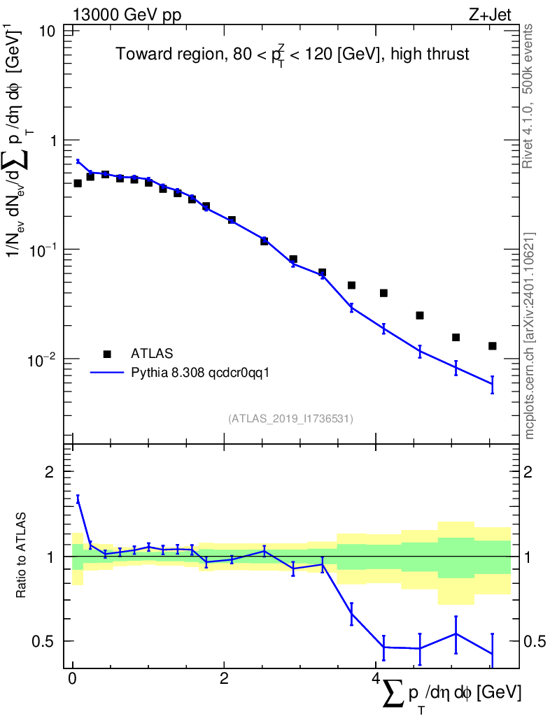 Lines: data, pythia8 8.308 qcdcr0qq1 |