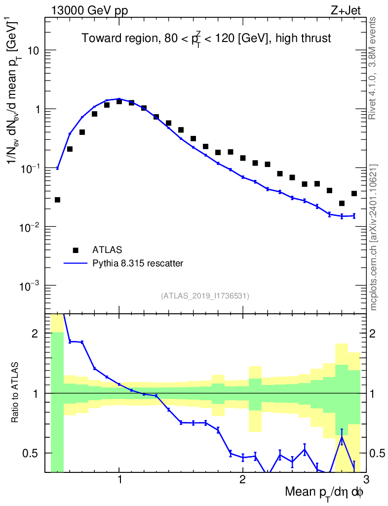 Lines: data, pythia8 8.315 rescatter |