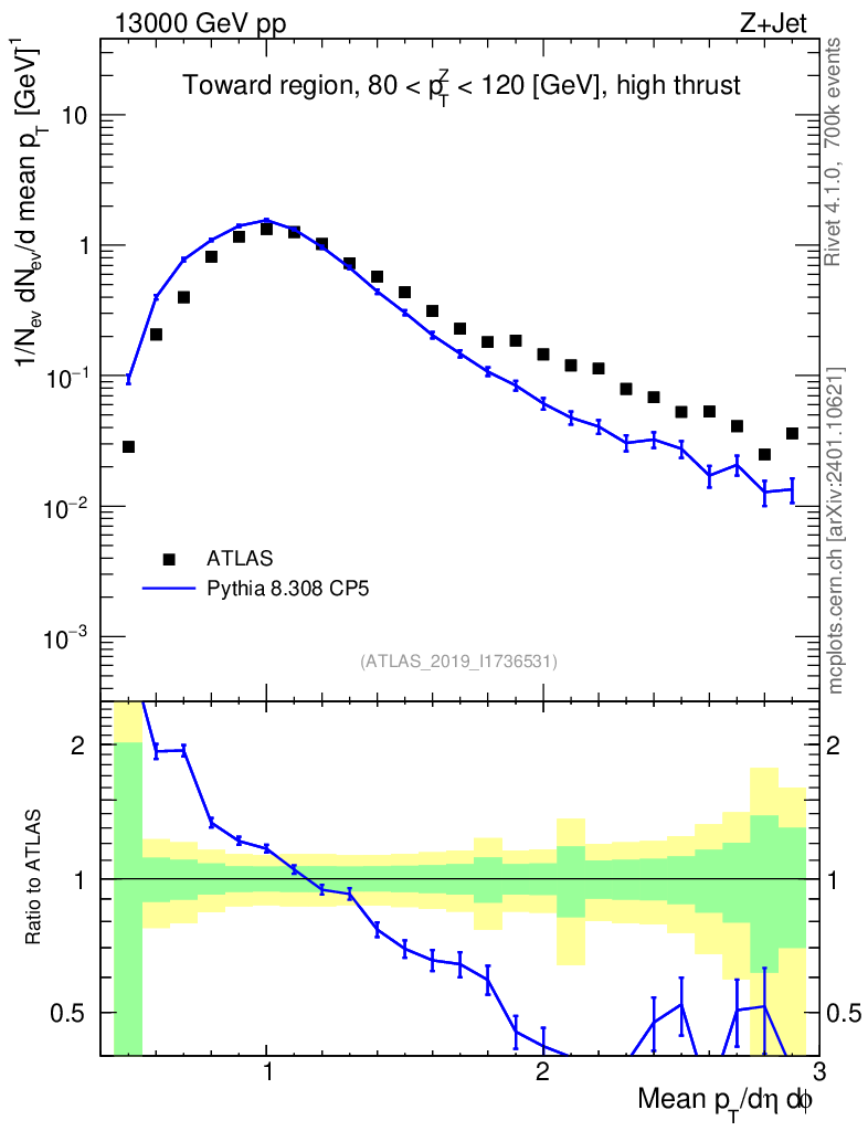 Lines: data, pythia8 8.308 CP5 |