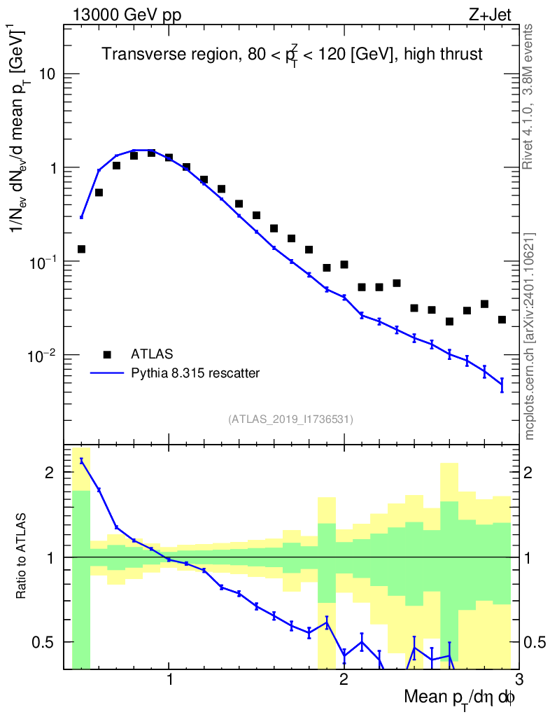 Lines: data, pythia8 8.315 rescatter |