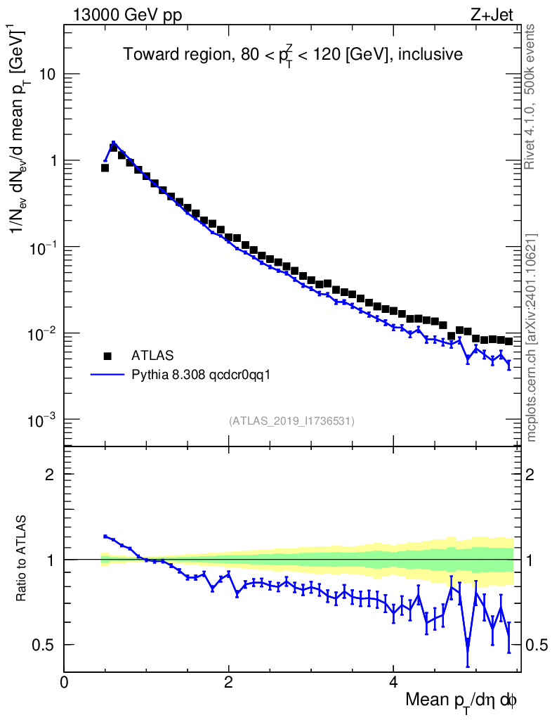 Lines: data, pythia8 8.308 qcdcr0qq1 |