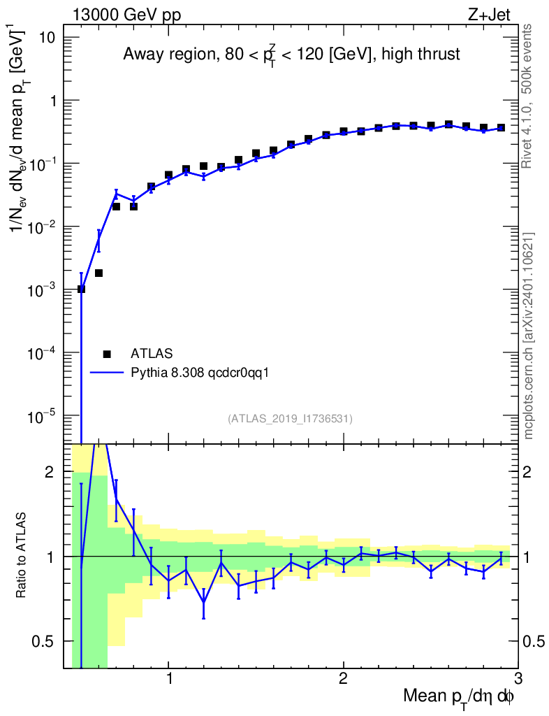 Lines: data, pythia8 8.308 qcdcr0qq1 |