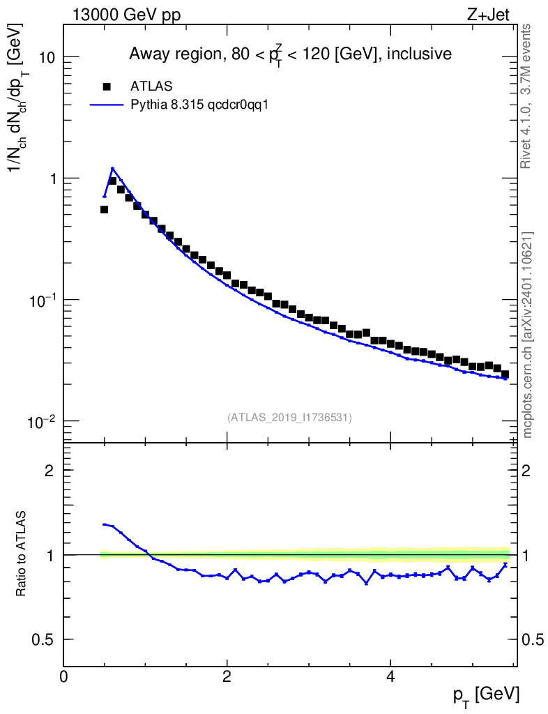 Lines: data, pythia8 8.315 qcdcr0qq1 |