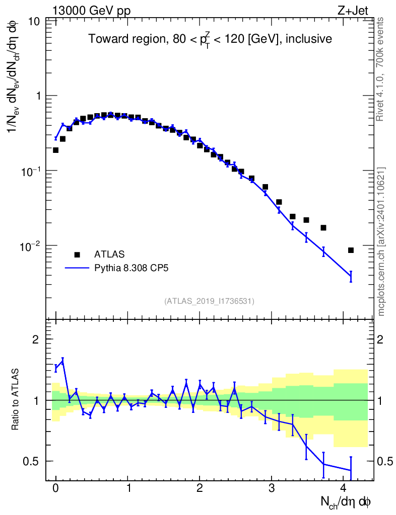 Lines: data, pythia8 8.308 CP5 |