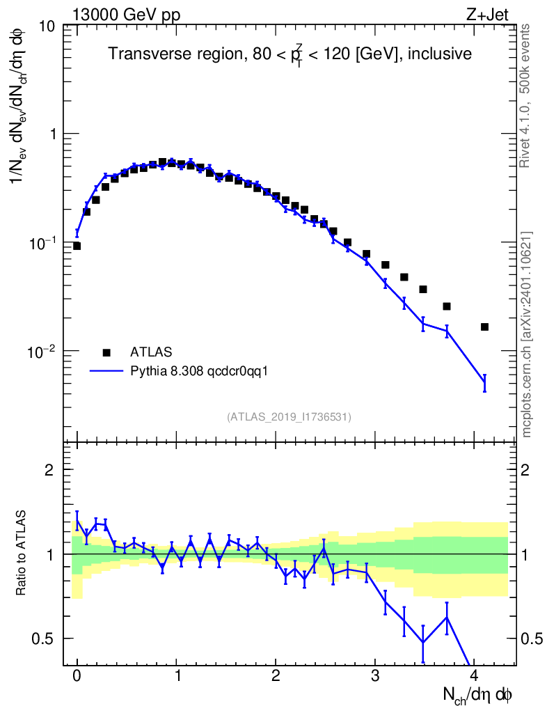 Lines: data, pythia8 8.308 qcdcr0qq1 |