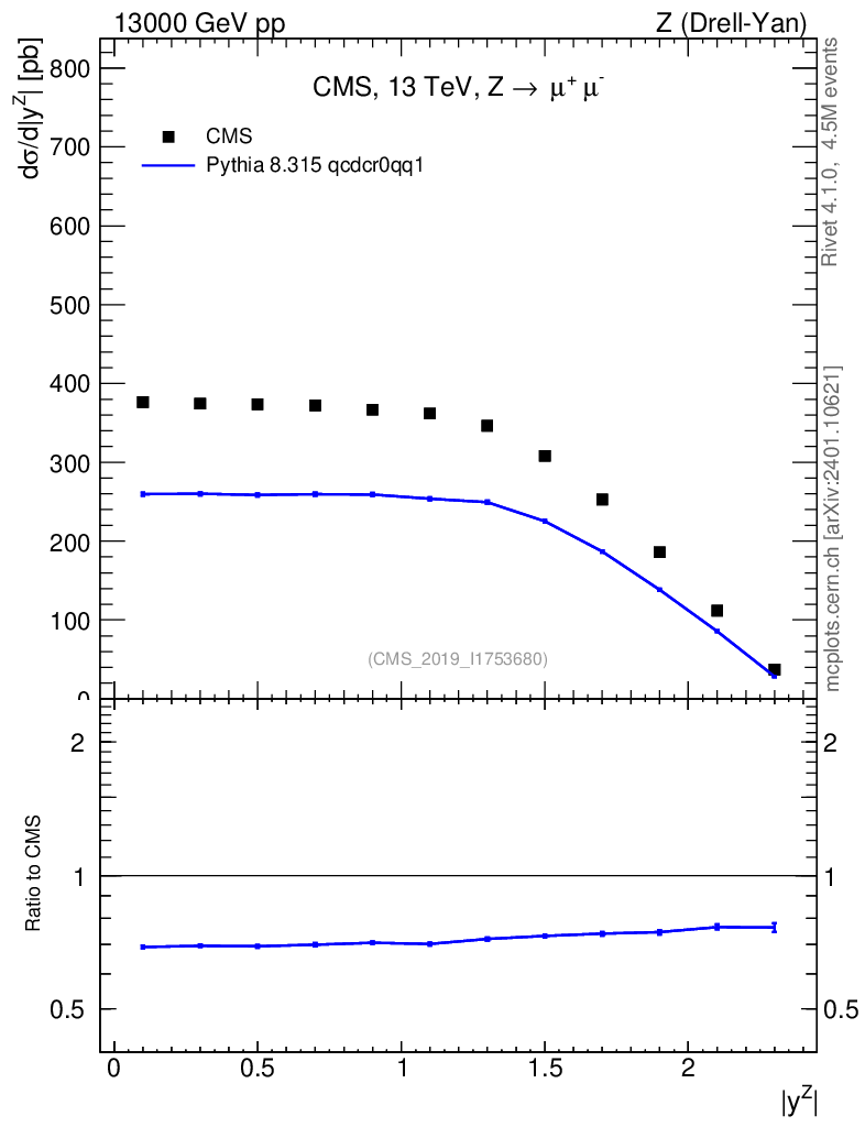 Lines: data, pythia8 8.315 qcdcr0qq1 |