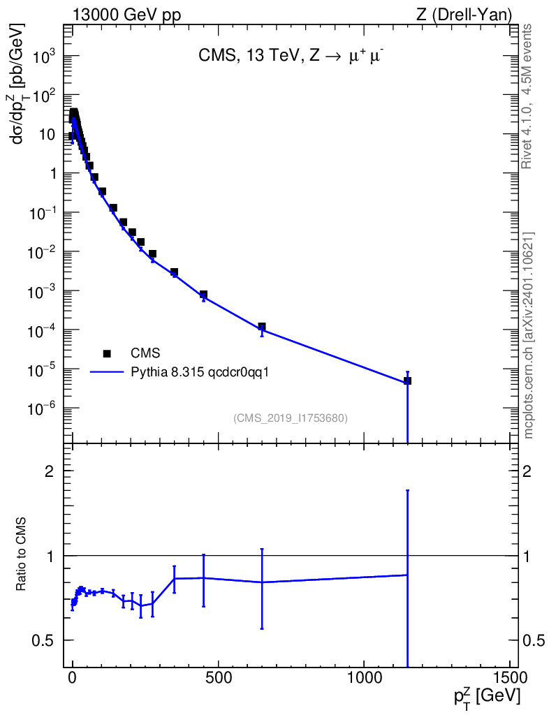 Lines: data, pythia8 8.315 qcdcr0qq1 |