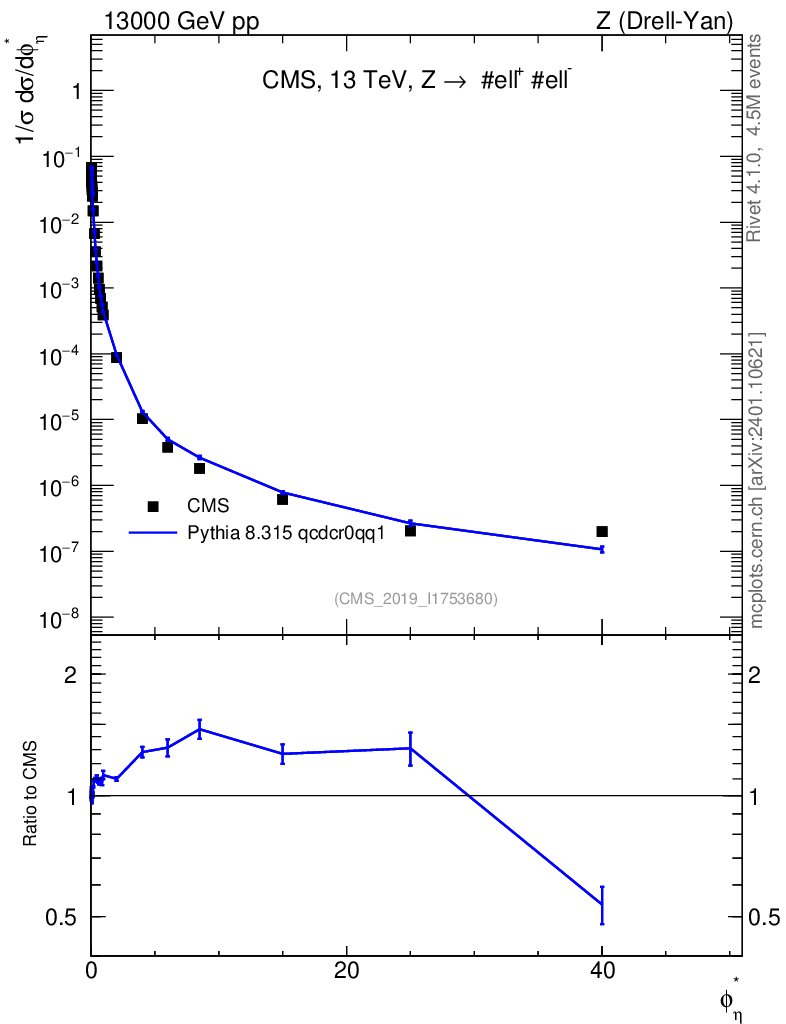 Lines: data, pythia8 8.315 qcdcr0qq1 |