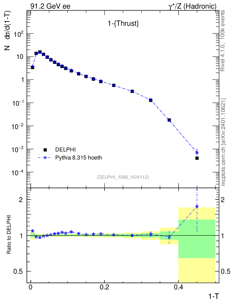 Lines: data, pythia8 8.315 hoeth |