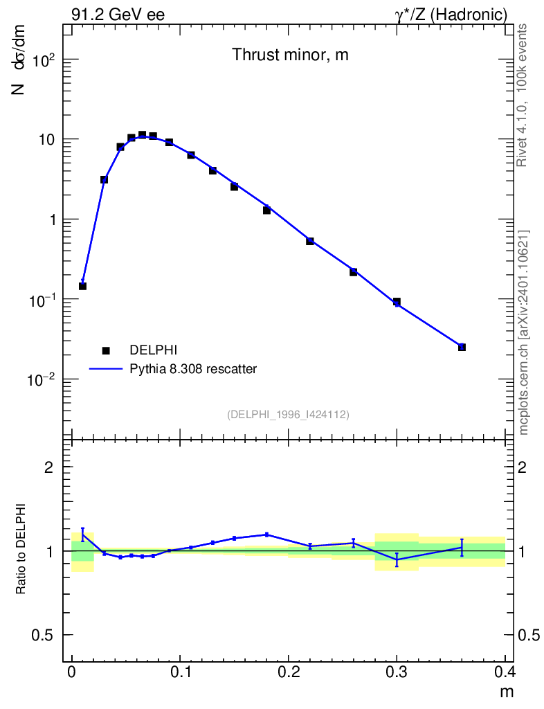 Lines: data, pythia8 8.308 rescatter |