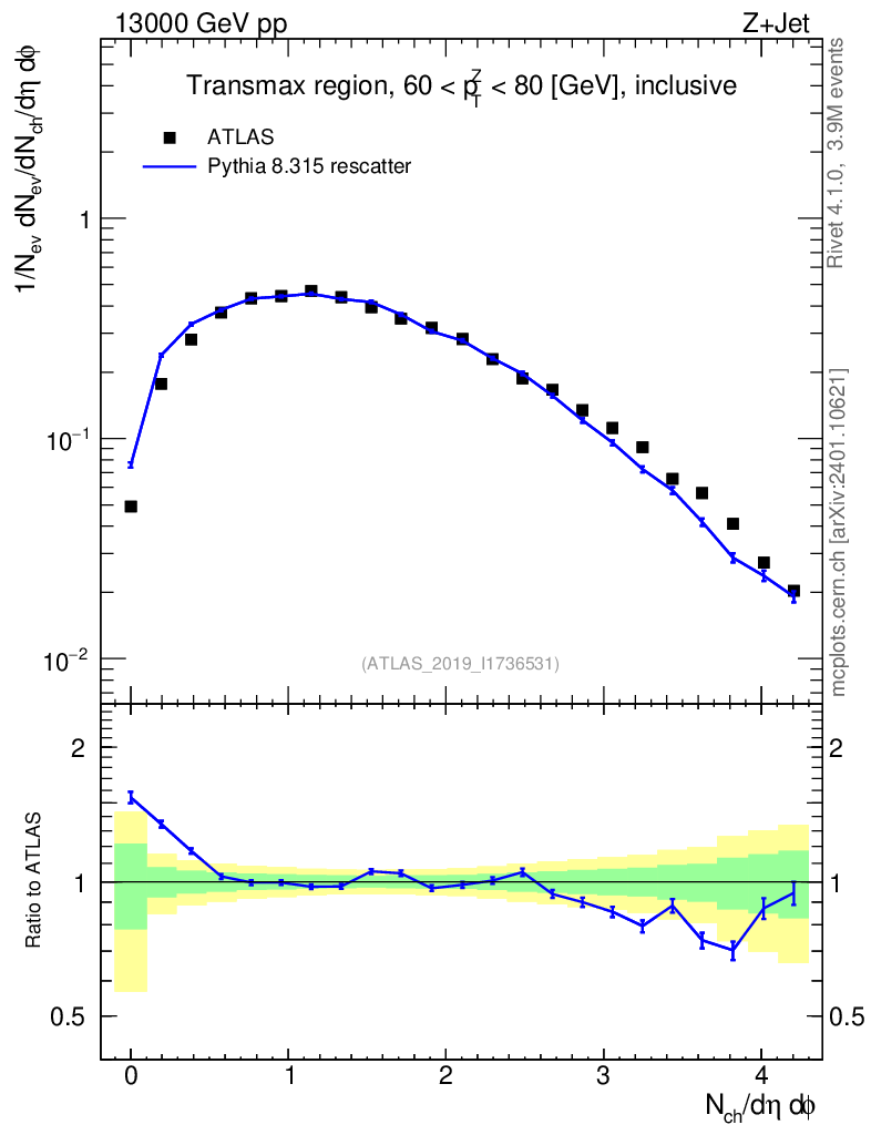 Lines: data, pythia8 8.315 rescatter |