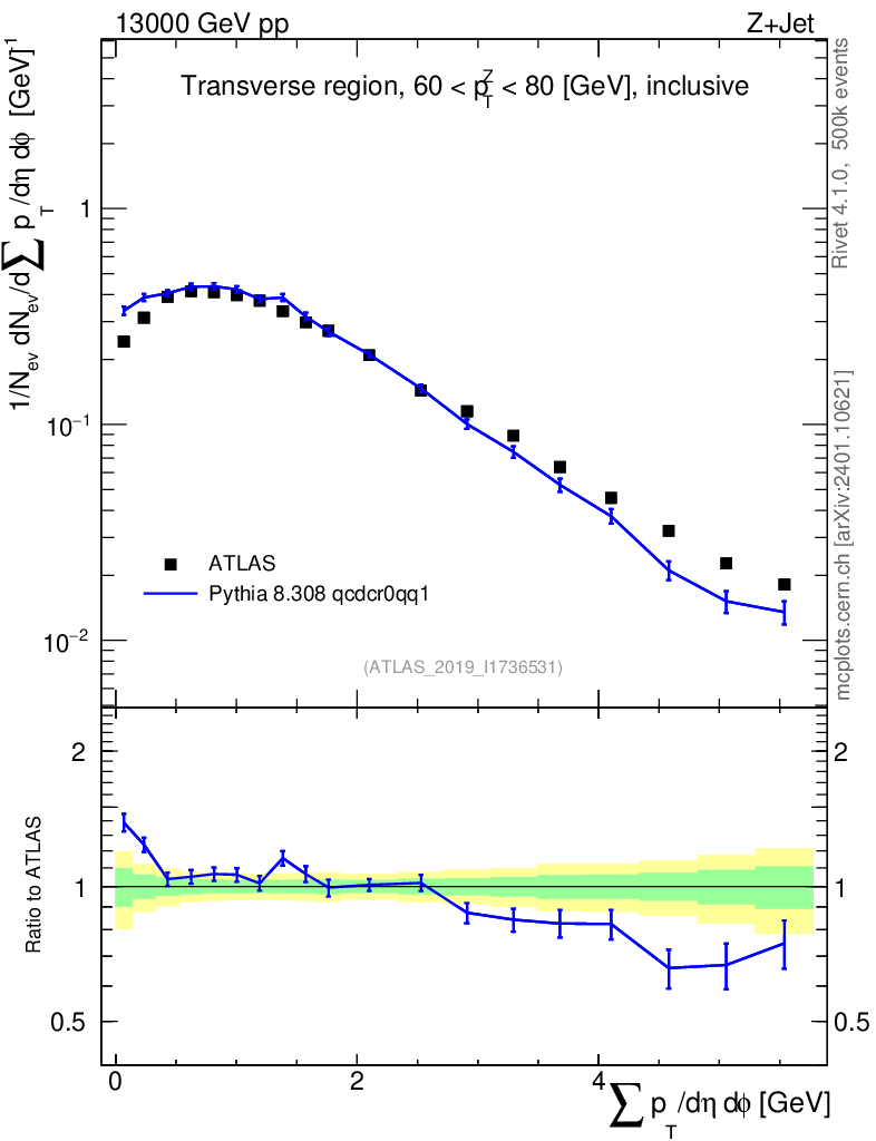Lines: data, pythia8 8.308 qcdcr0qq1 |