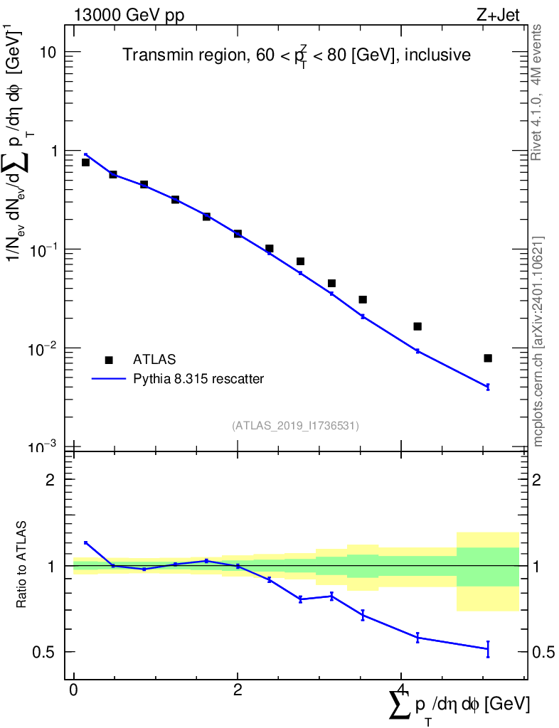 Lines: data, pythia8 8.315 rescatter |