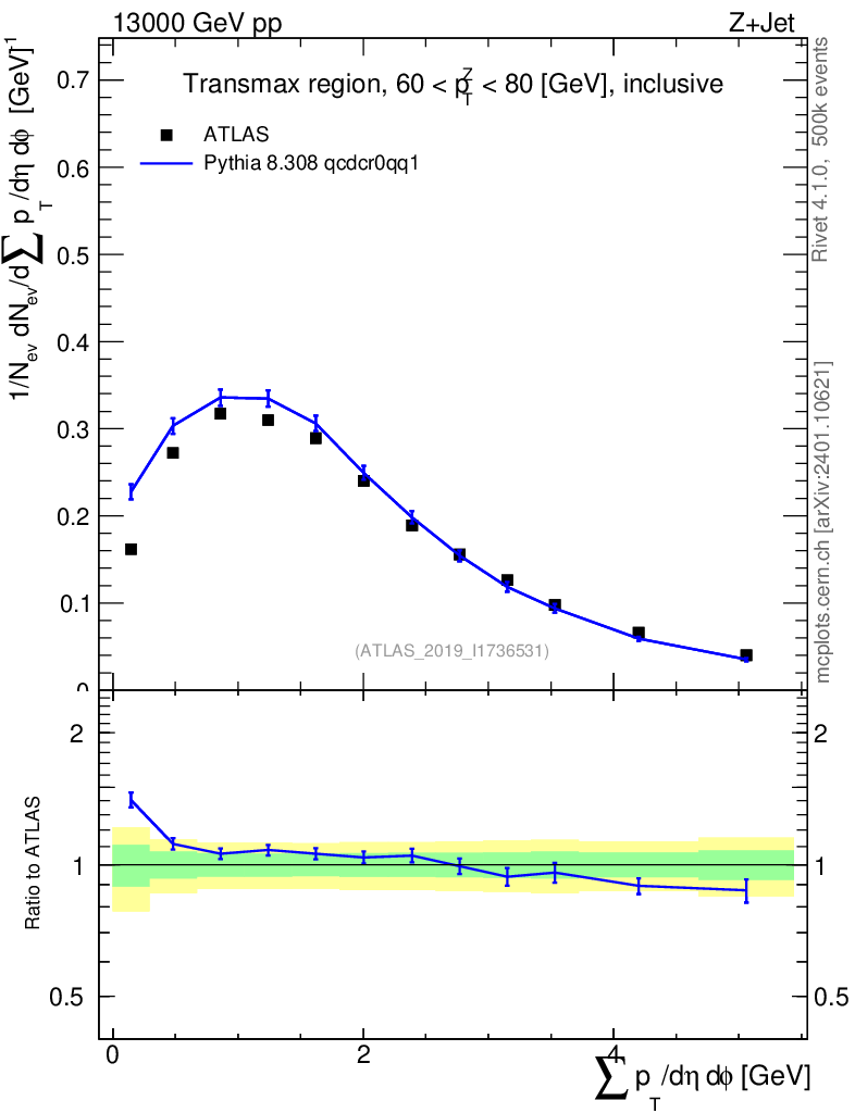 Lines: data, pythia8 8.308 qcdcr0qq1 |