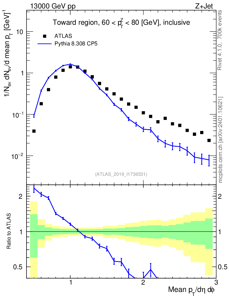 Lines: data, pythia8 8.308 CP5 |