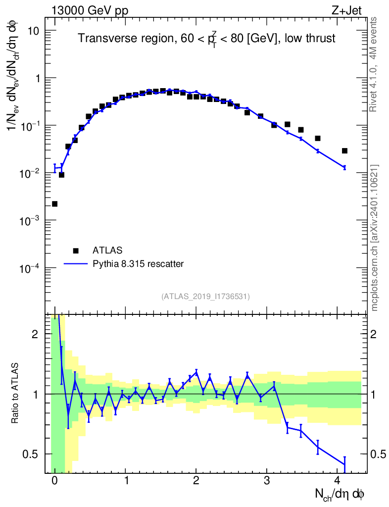 Lines: data, pythia8 8.315 rescatter |
