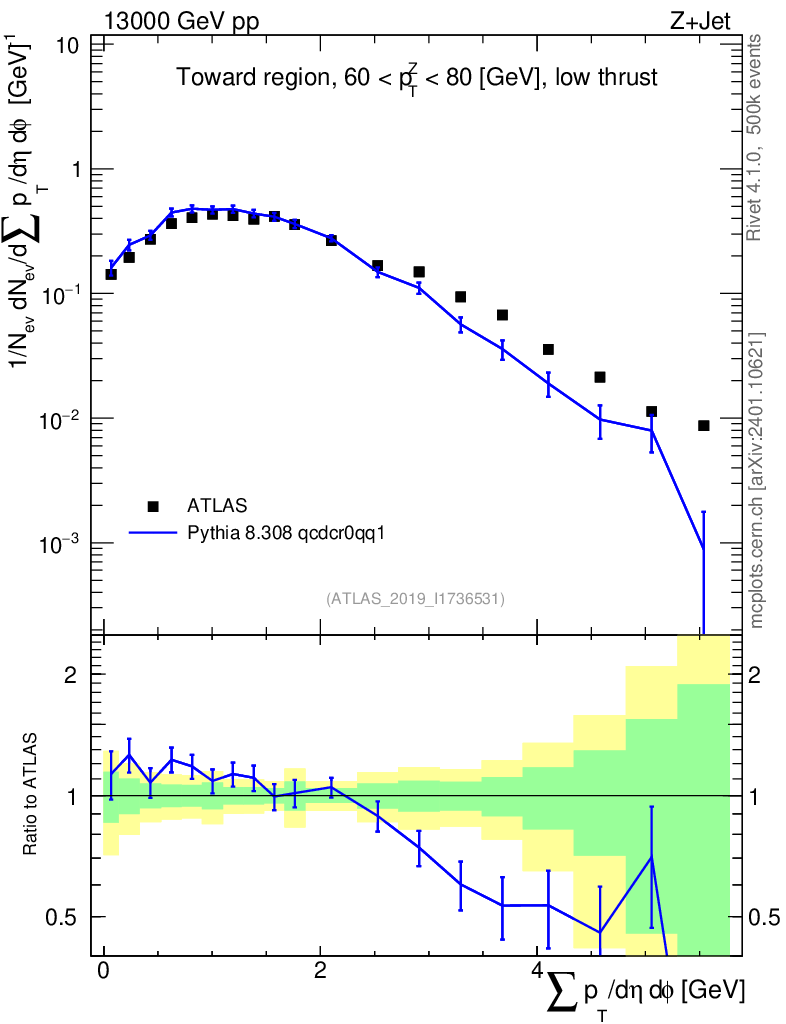 Lines: data, pythia8 8.308 qcdcr0qq1 |