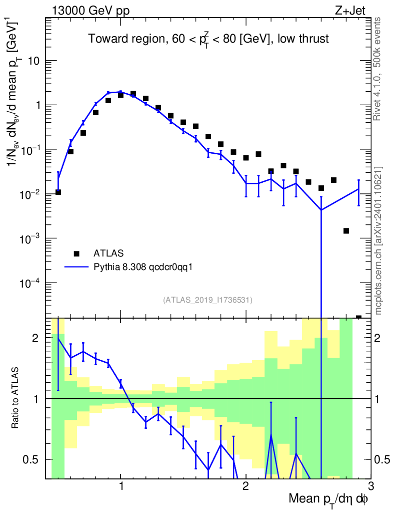 Lines: data, pythia8 8.308 qcdcr0qq1 |