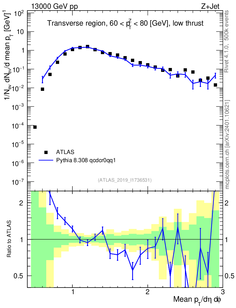 Lines: data, pythia8 8.308 qcdcr0qq1 |