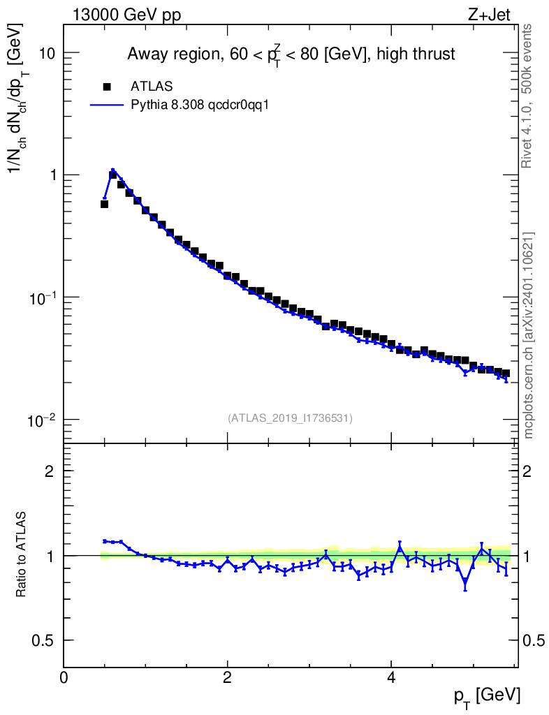 Lines: data, pythia8 8.308 qcdcr0qq1 |