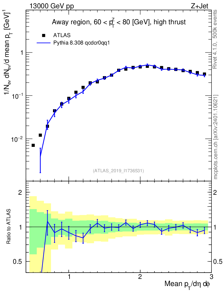 Lines: data, pythia8 8.308 qcdcr0qq1 |