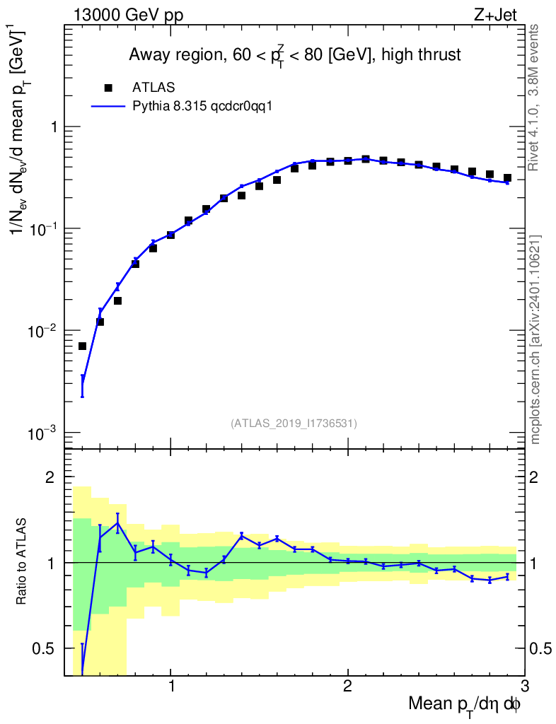 Lines: data, pythia8 8.315 qcdcr0qq1 |