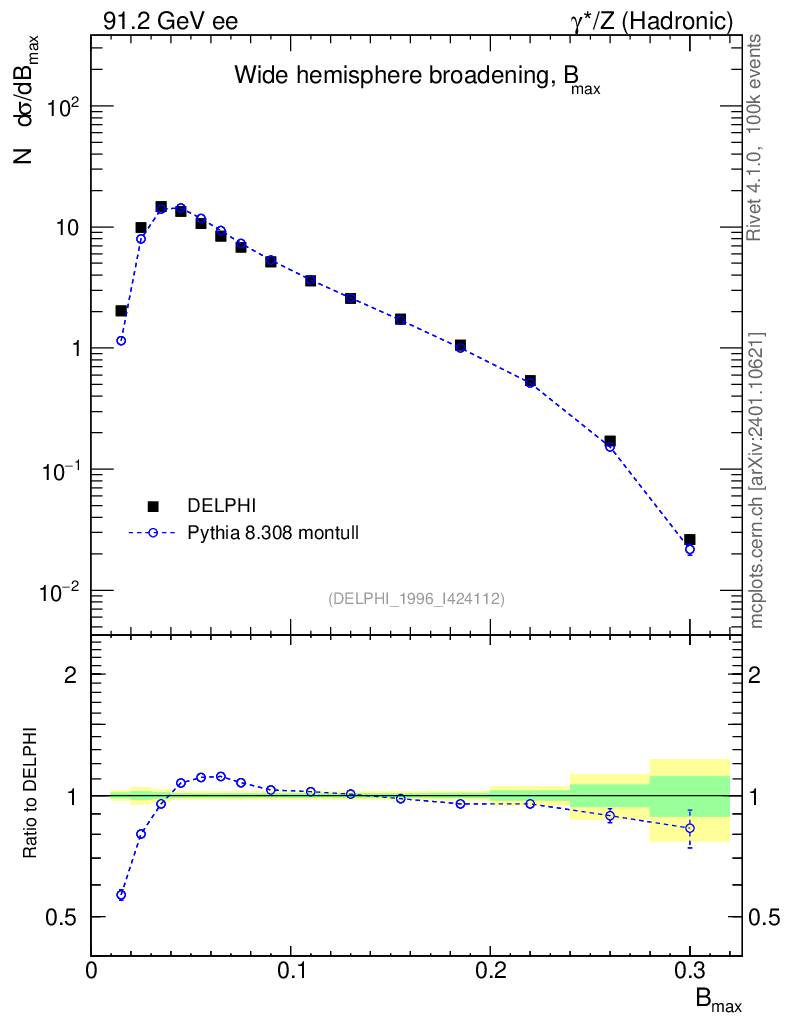 Lines: data, pythia8 8.308 montull |