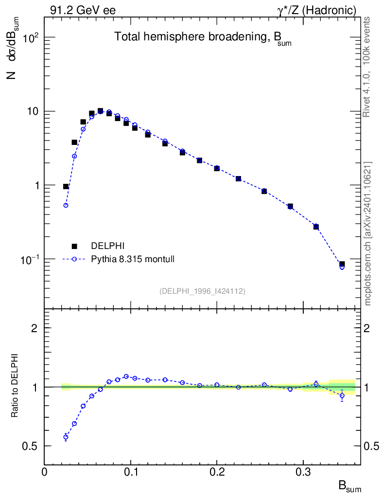 Lines: data, pythia8 8.315 montull |