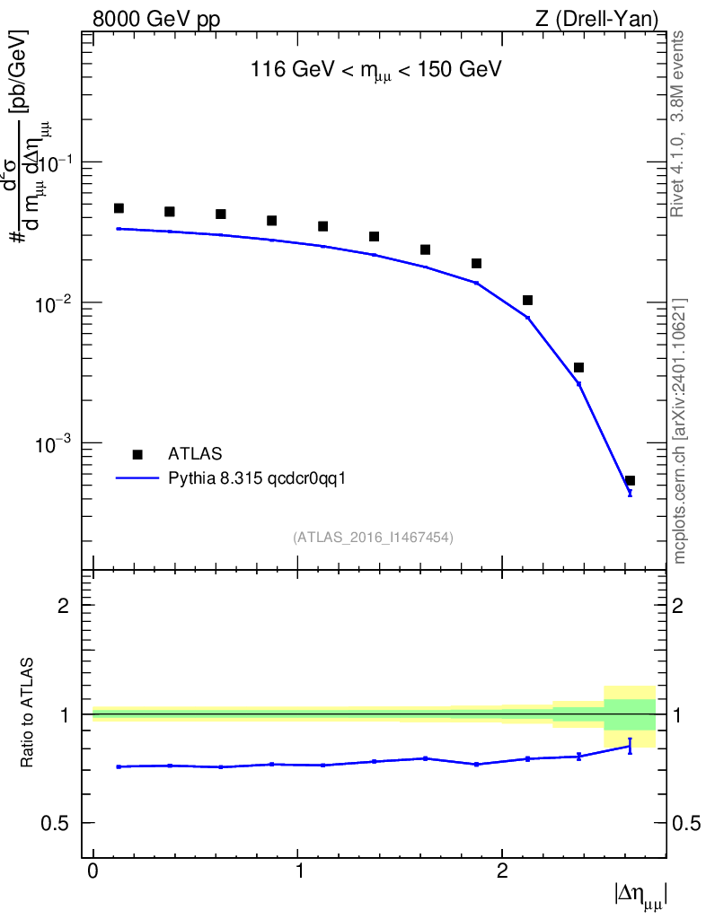 Lines: data, pythia8 8.315 qcdcr0qq1 |