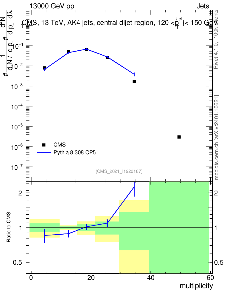 Lines: data, pythia8 8.308 CP5 |