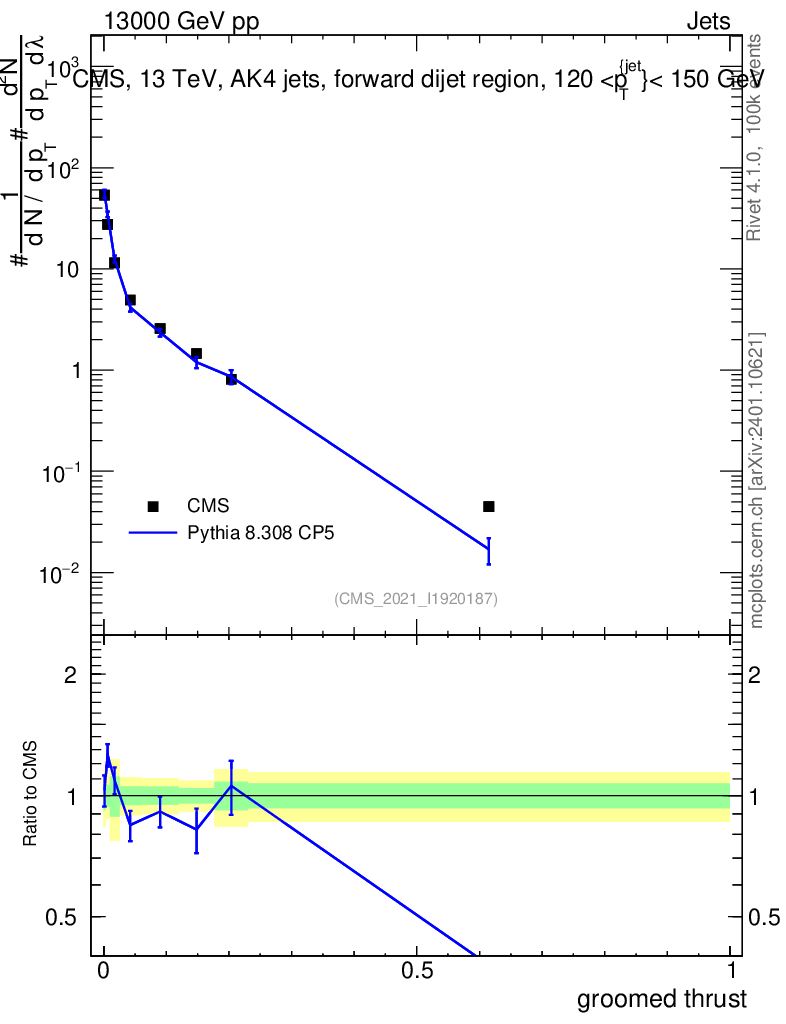 Lines: data, pythia8 8.308 CP5 |