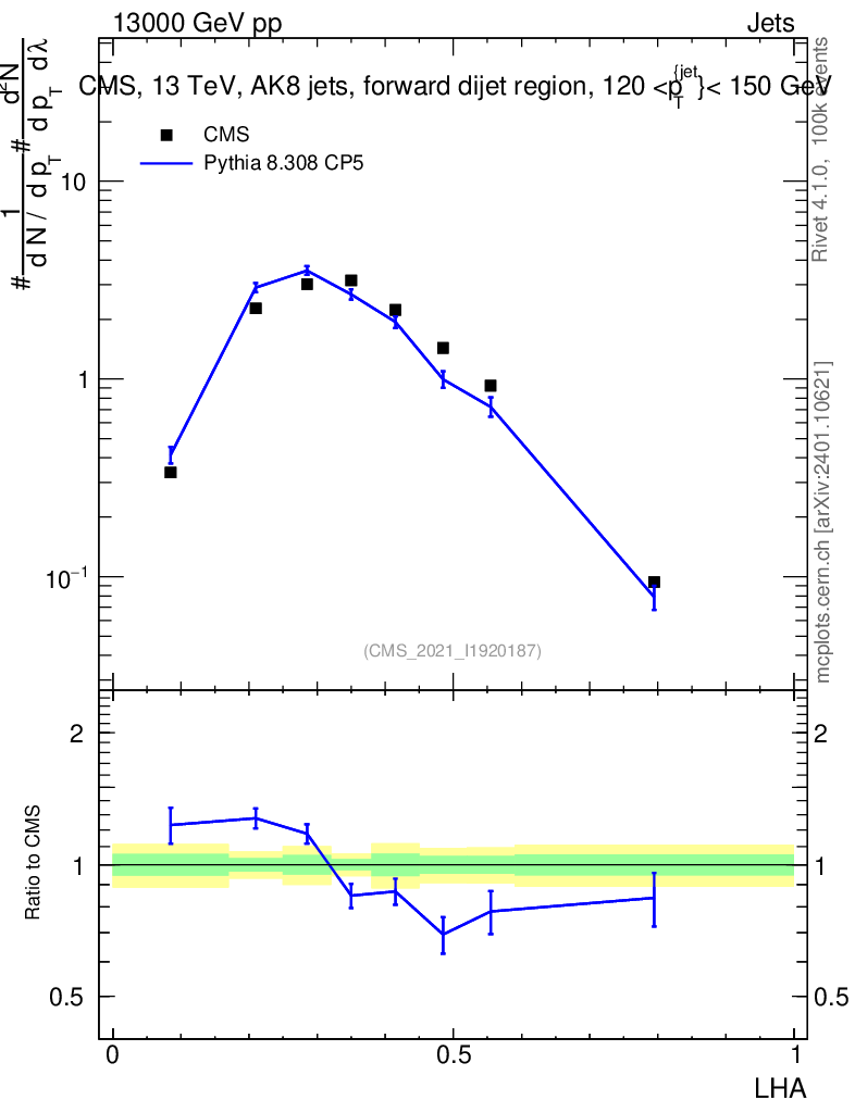 Lines: data, pythia8 8.308 CP5 |