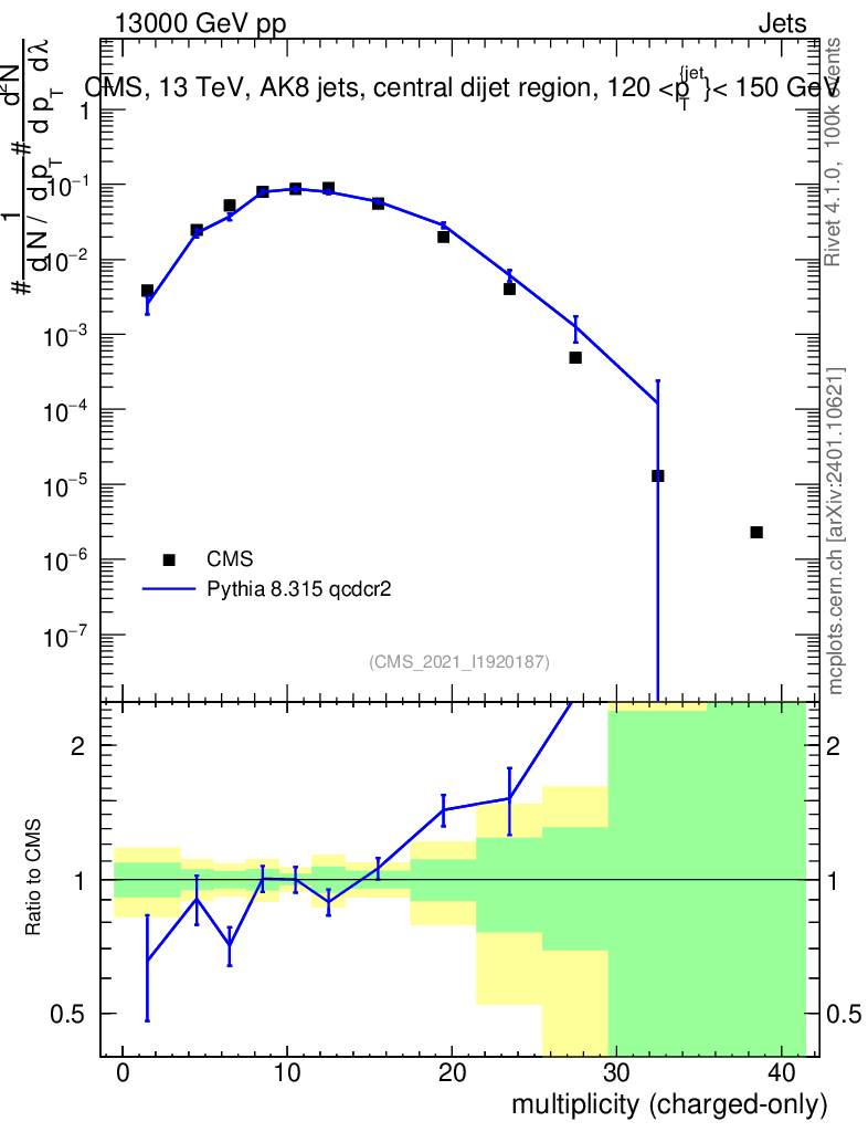 Lines: data, pythia8 8.315 qcdcr2 |