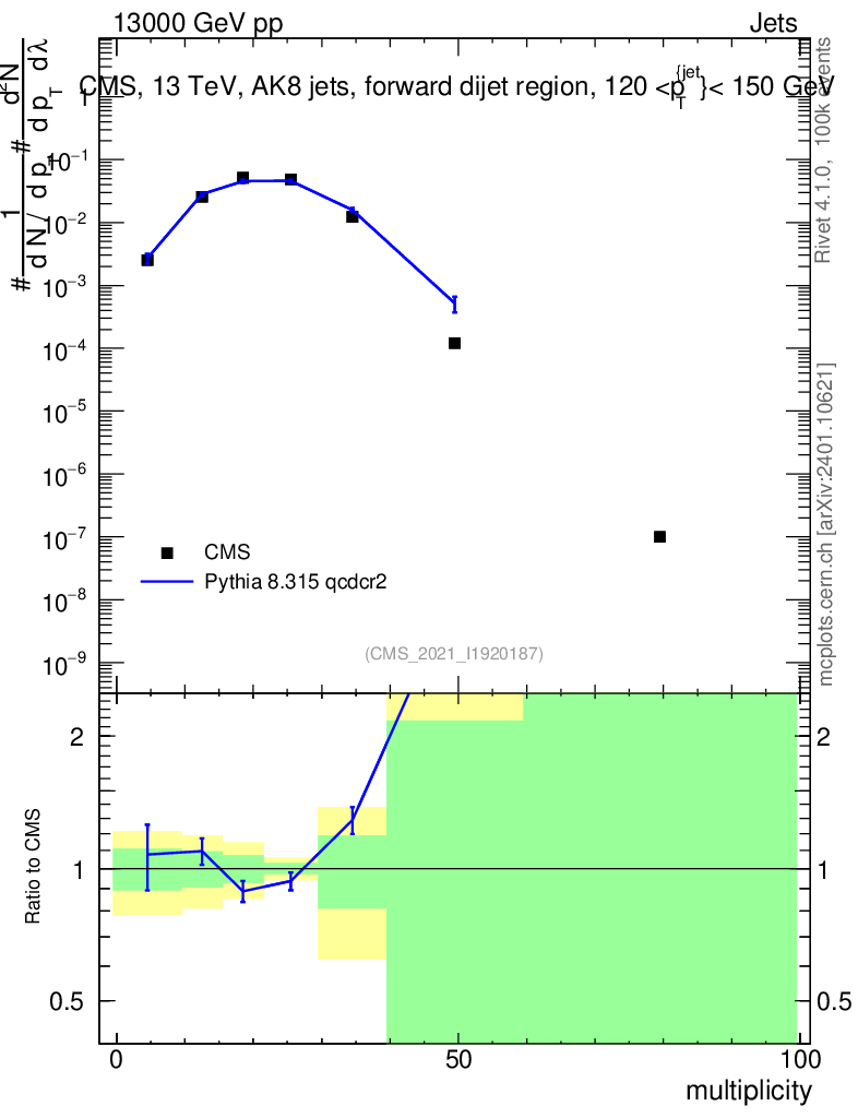 Lines: data, pythia8 8.315 qcdcr2 |