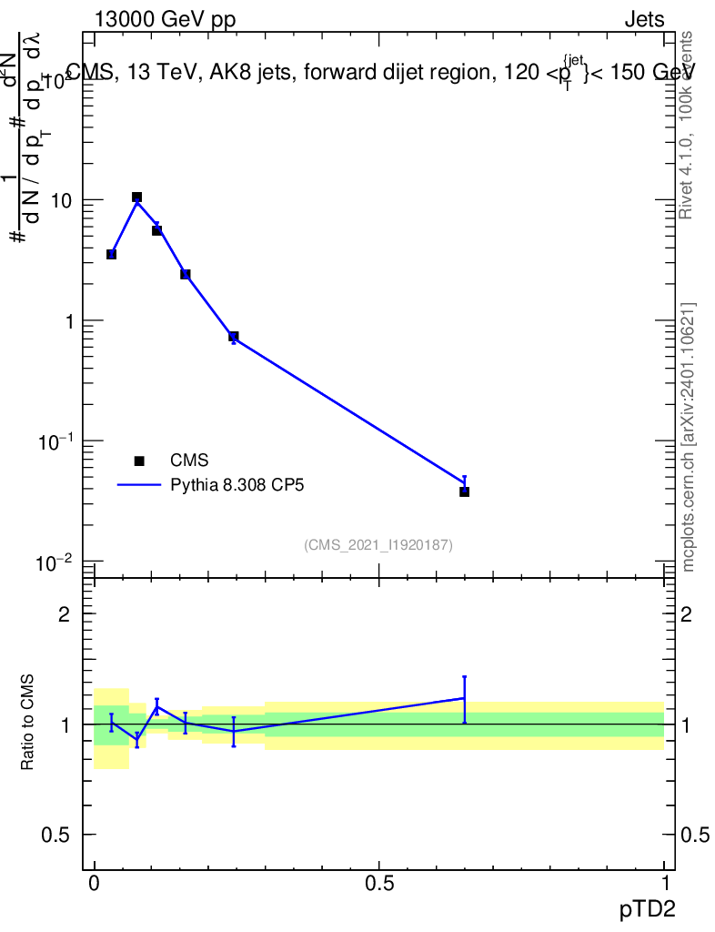 Lines: data, pythia8 8.308 CP5 |