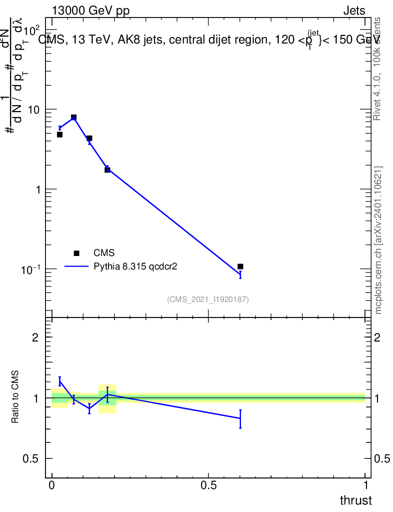 Lines: data, pythia8 8.315 qcdcr2 |