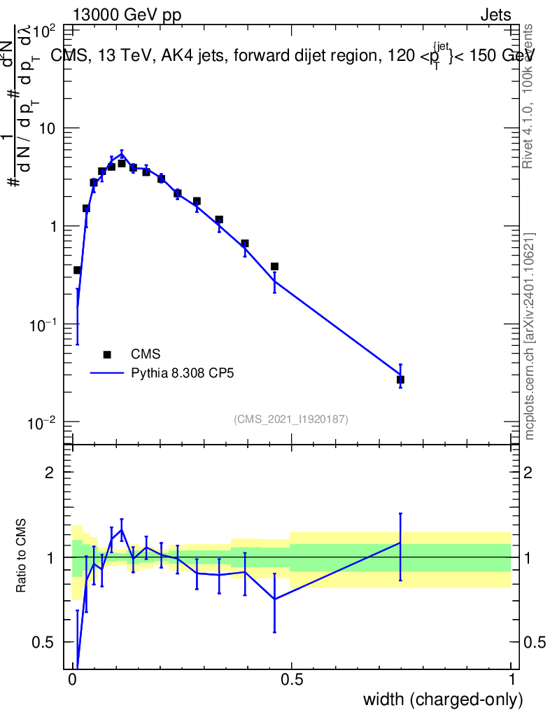 Lines: data, pythia8 8.308 CP5 |