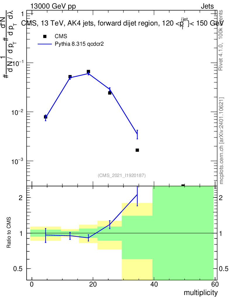 Lines: data, pythia8 8.315 qcdcr2 |