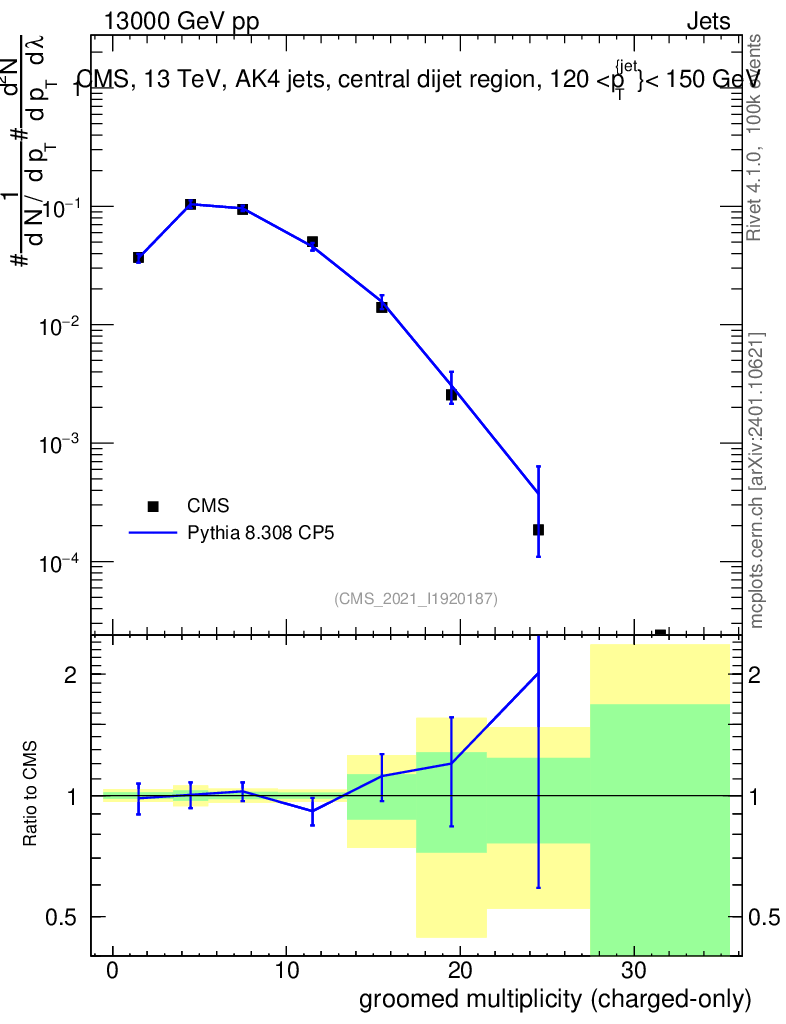 Lines: data, pythia8 8.308 CP5 |