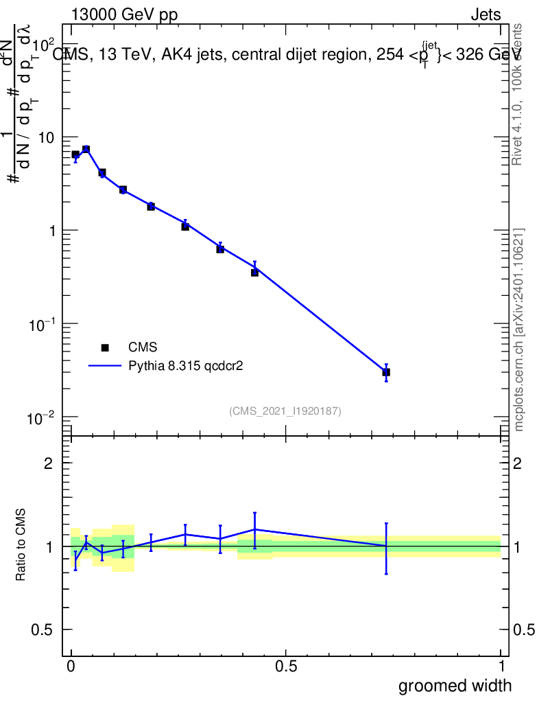 Lines: data, pythia8 8.315 qcdcr2 |
