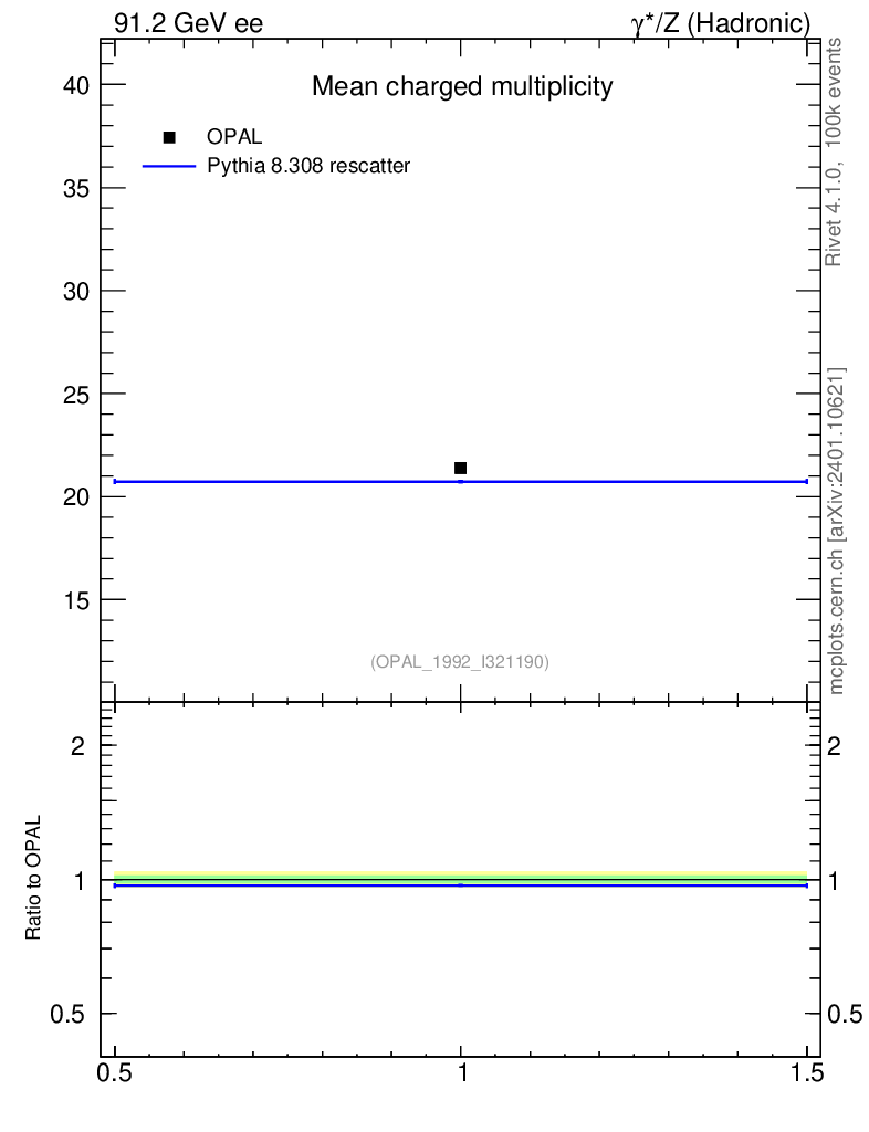 Lines: data, pythia8 8.308 rescatter |