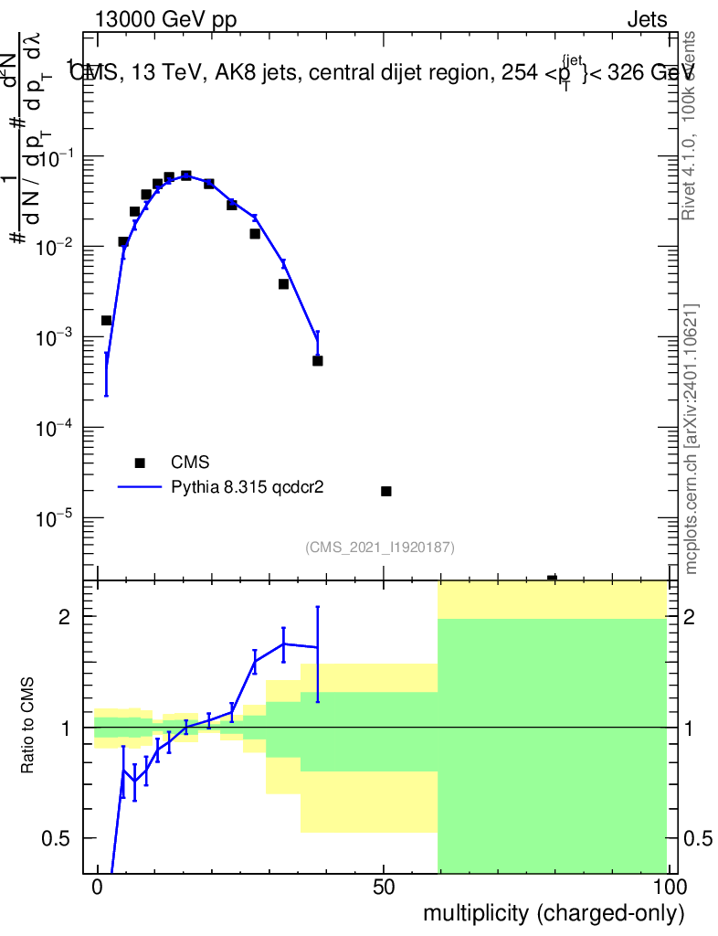 Lines: data, pythia8 8.315 qcdcr2 |