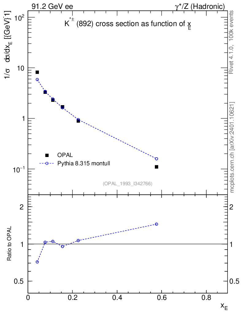 Plot of xKst in 91.2 GeV ee collisions