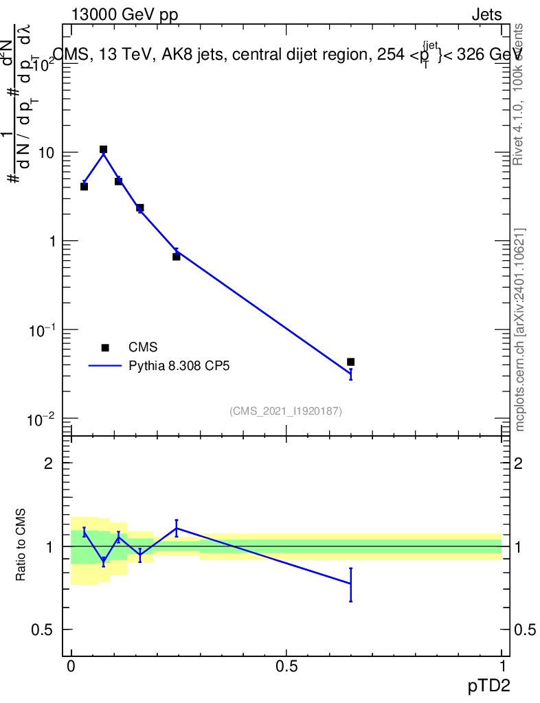 Lines: data, pythia8 8.308 CP5 |