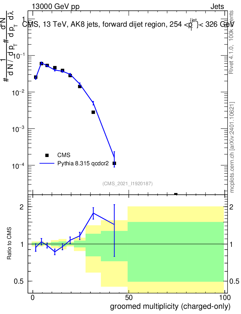 Lines: data, pythia8 8.315 qcdcr2 |